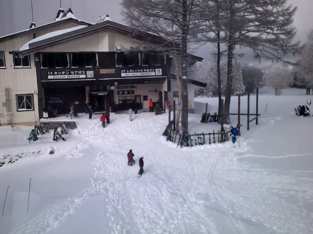 志賀高原で滑ろうと思って朝早く横手/熊の湯にやってきましたが、猛吹雪で駐車場の除雪もままならない状況でしたので、志賀高原での滑走を断念し、一旦下山して、野沢温泉スキー場に場所を変更しました。
