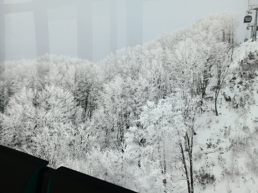 ゴンドラの下の木々は霧氷で雪化粧されていて綺麗です♪