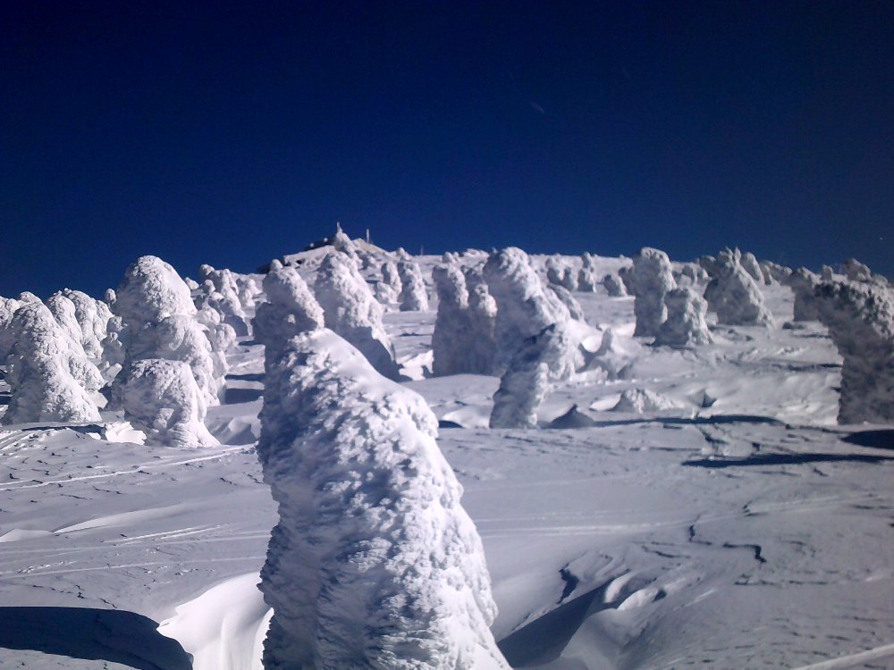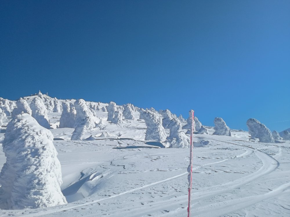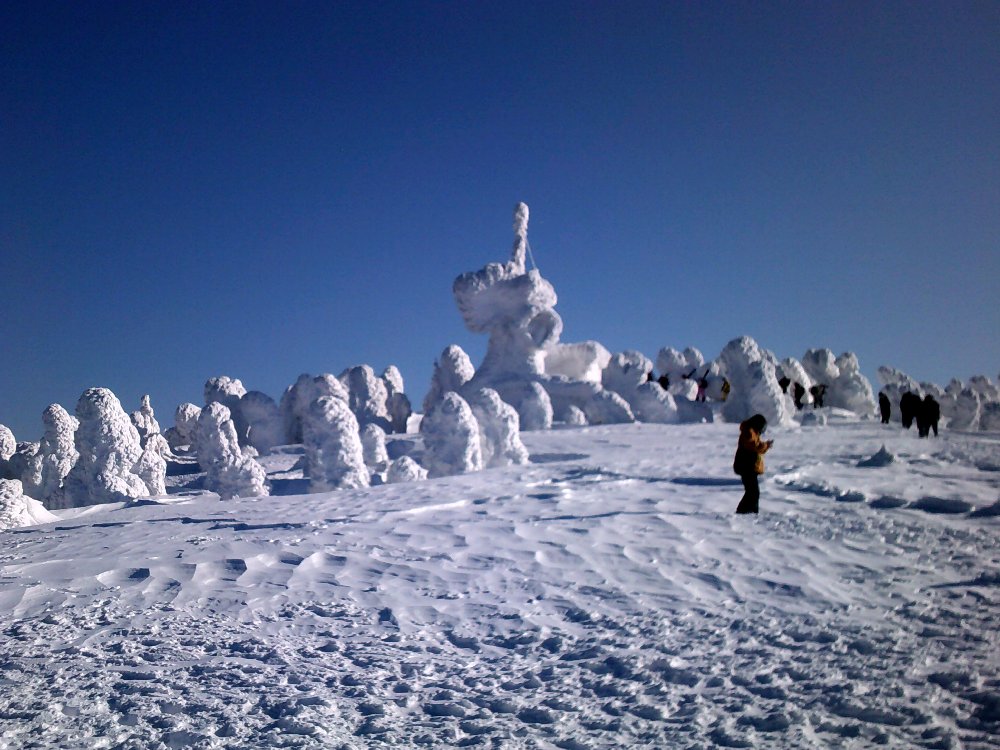 暦の上では春かも知れませんが、中腹より樹氷(スノーモンスター)があって、ここは真冬の様相です。