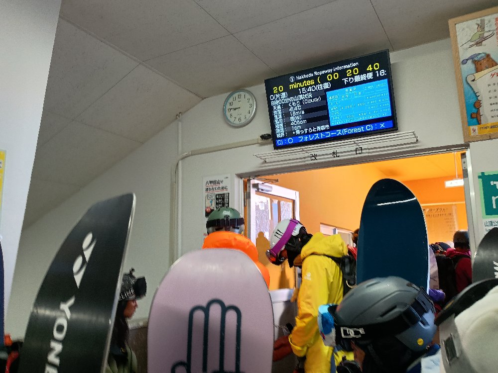 今朝6:00の段階では「×強風運休中」となっておりましたので、ダメだったら、山麓の「モヤヒルズ」で滑ろうと思って道の駅を出発しました。昨日暖かい日差しだったので、雪解けが進み、早朝は「黒氷」でツルツルの路面となっていました。皆さん60Kmくらいのスピードで走行されていますので、「大丈夫かな~!」と思って走行していましたが、突如渋滞に!・・早速Uターンして別の道を走行しました。途中パトカーとすれ違いました。もう少し判断が遅かったら、当分の間渋滞に巻き込まれていたに違いありません。