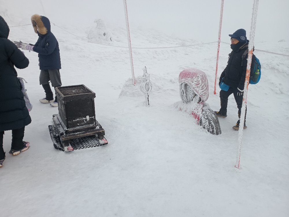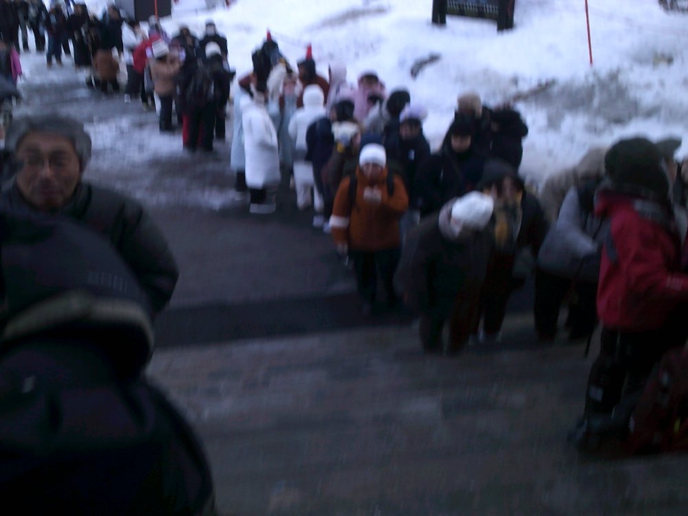 8:30からロープウェイの営業開始なんですが、既に長蛇の列ができてしまっています。1時間チケットを買うために並んで、またロープウェイの順番待ちに並ぶことになります。まず、お地蔵さんのところまで上がりたいですよね!