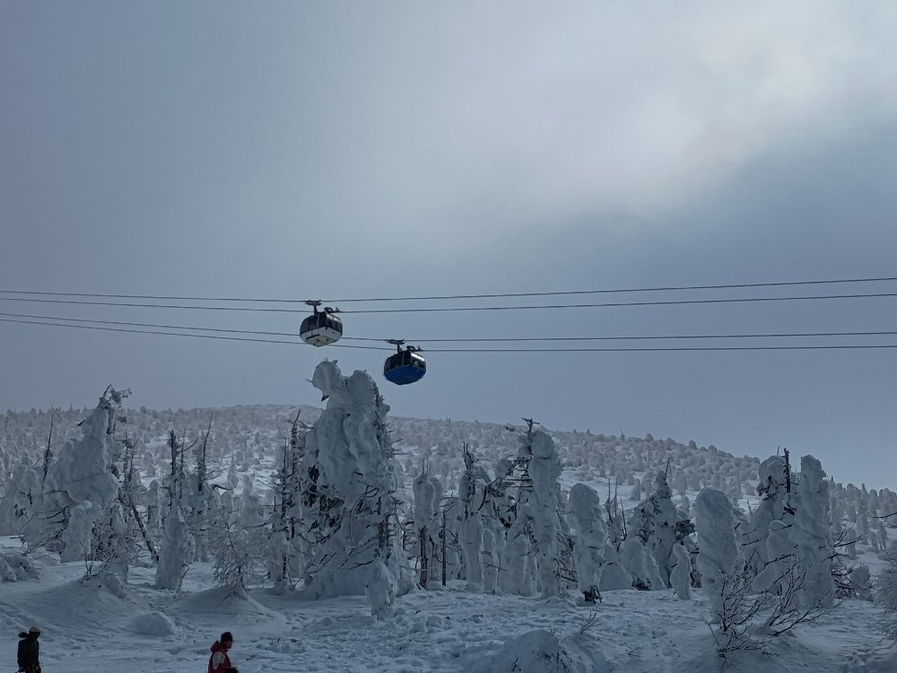 樹氷の上でロープウエイが交差して・・良い画じゃないですか?!