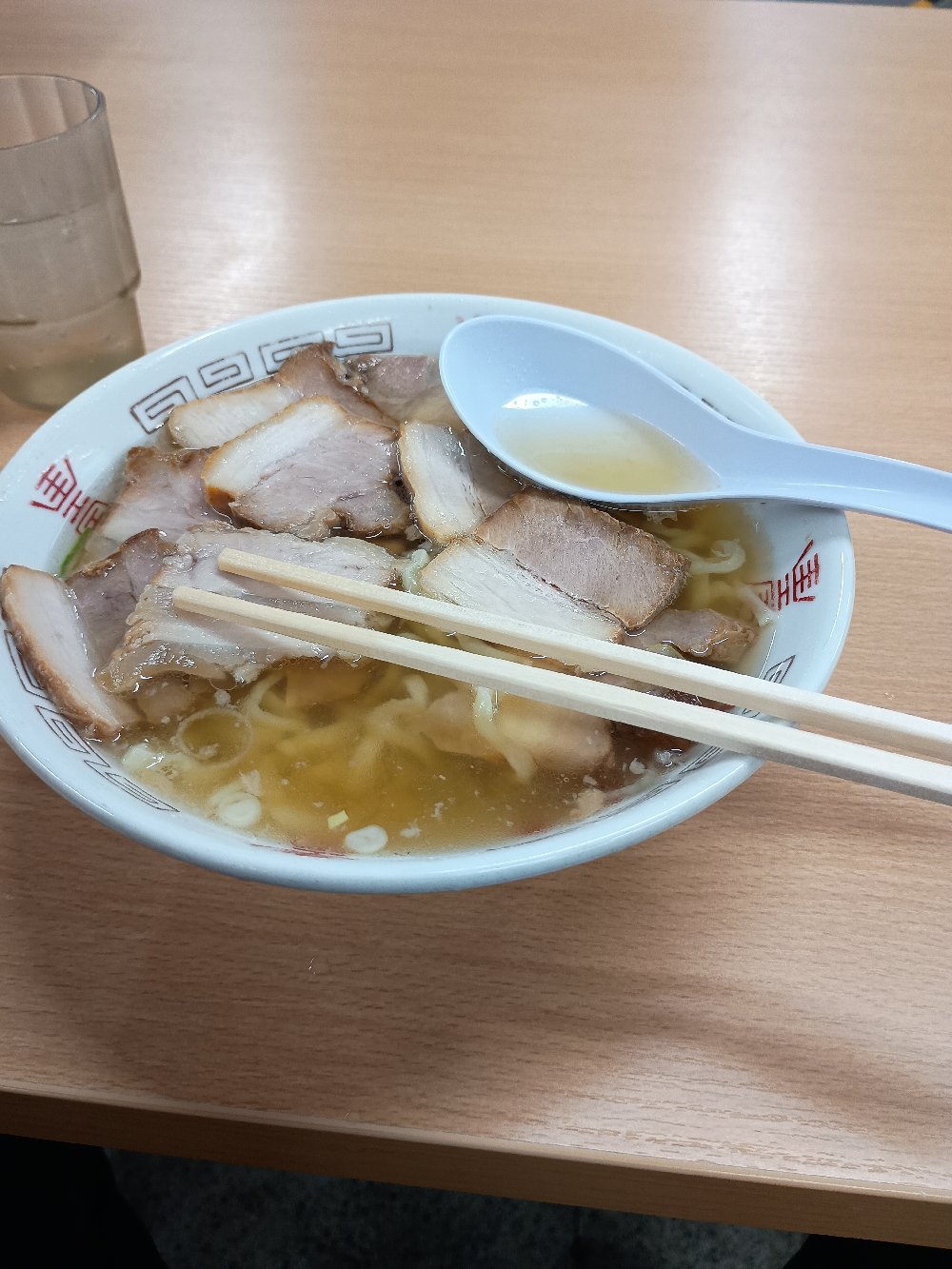 やはり福島に戻ると・・喜多方ラーメンですよね!♪ いつも長い待ち行列ができている「坂内食堂」が空いていたので、「肉そば」を・・。食べ始めてから写真を忘れていたので、記念撮影!