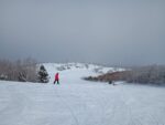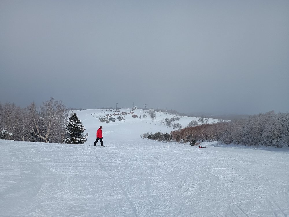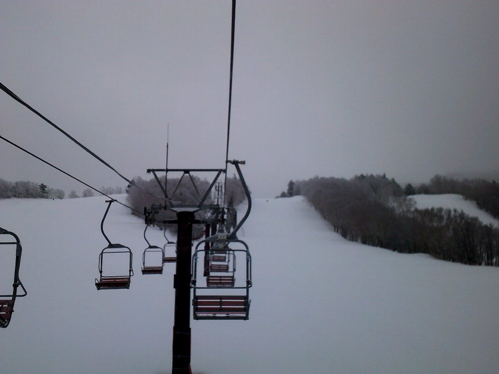 朝のうちは、小雪が舞う曇りの天候でしたが、風も無く、気温も低めで、雪面が荒れることもありませんでした。