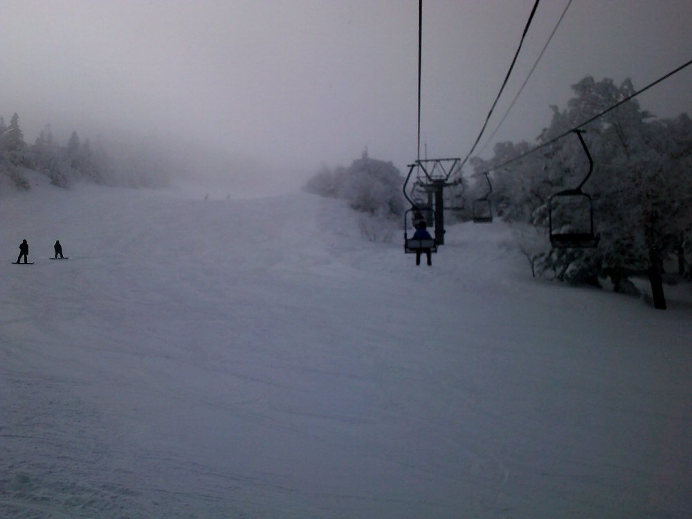 チケット売り場に並んで、朝2便目のロープウエイで上に上がることができました。土日はやはり客が多いので、混雑しないスキー場を選ぶ必要がありました。結果的には正解で、リフトは全く混まないで快適に滑ることができました。