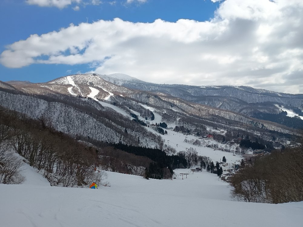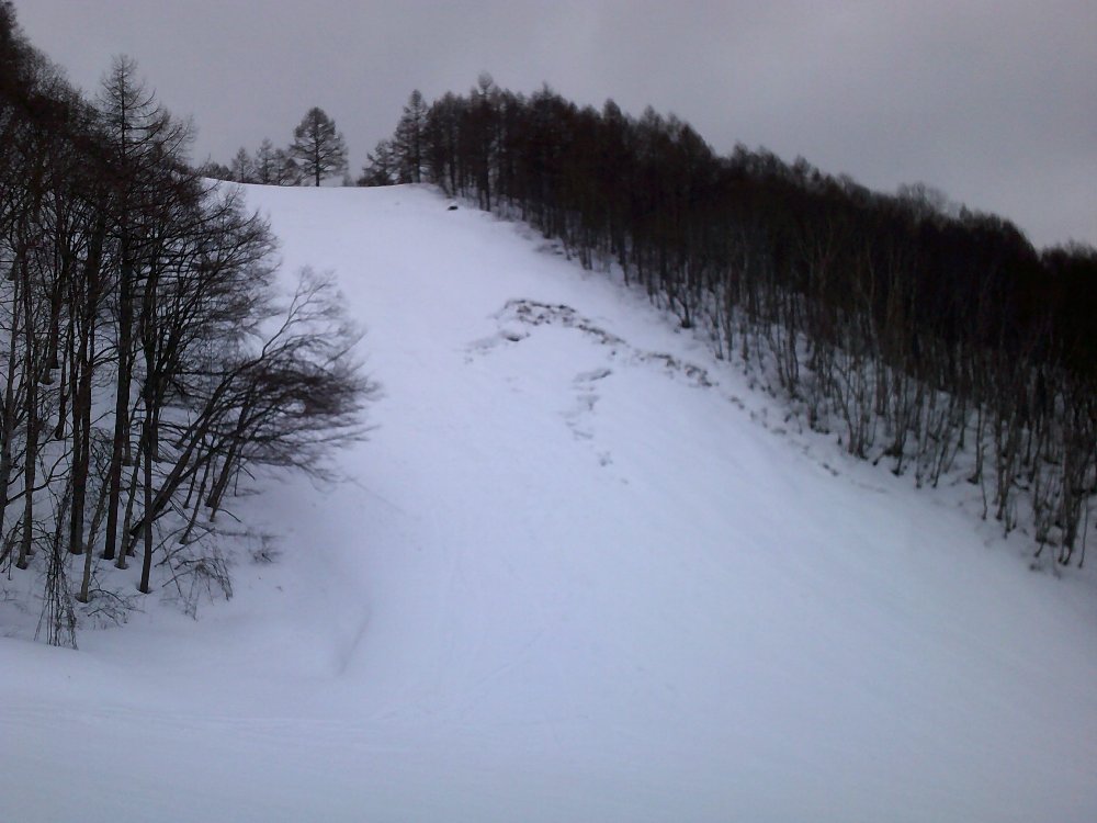 (中央ゲレンデに行きたくてリフトを乗り継ごうとしましたが、山頂線ゴンドラ乗り場に降りてしまい、山頂まで・・2回目のザンゲ坂ということに・・百万人ゲレンデからは少し登らないと連絡リフトに乗れないということを思い出しました。・・過去にもやらかしていました。・・黒姫からのクワッド経由も同じ!)