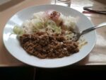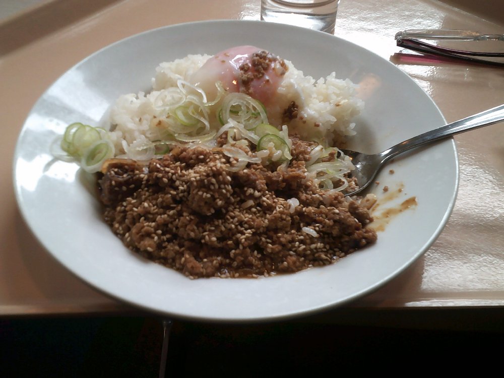ダイヤモンド→中央ゲレンデ→上の台ゲレンデと滑ってきて、疲れたので、早めの昼食。ジャージャー飯(麺では無く・・)!