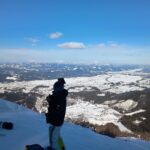 山頂からは周辺が見渡せるパノラマが広がっています。気温は高めですが、コースはカリカリのハードバーンです。