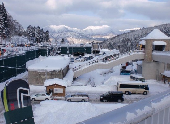 続々とスキーヤーが到着します。 白山(実際は、白山の手前の山)もきれいに見えています。