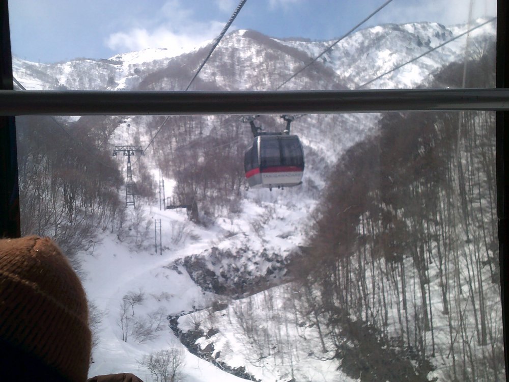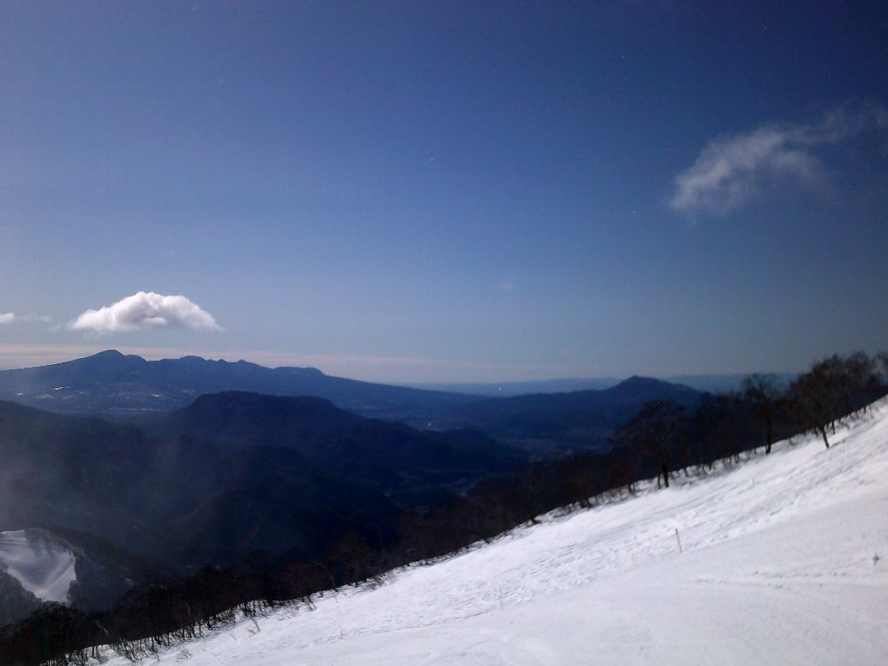 やはりゴンドラ乗り場の下駅まで滑り降りる下山コース4Kmは魅力です。この時期急斜面はつづら折りの狭いコースとなっていましたが、けっこう楽しめるコースでした。