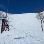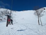 ゲレンデは一部を除き、ほぼ非圧雪で、バックカントリー感を味わえます。この時期、朝のうちはバリバリの斜面ですし、斜度もきついので、なかなか滑りごたえがあります。リフト1本の運行でも飽きることの無い広大な非圧雪斜面です。新雪が降った後などは、パウダーを味わえるはずです。