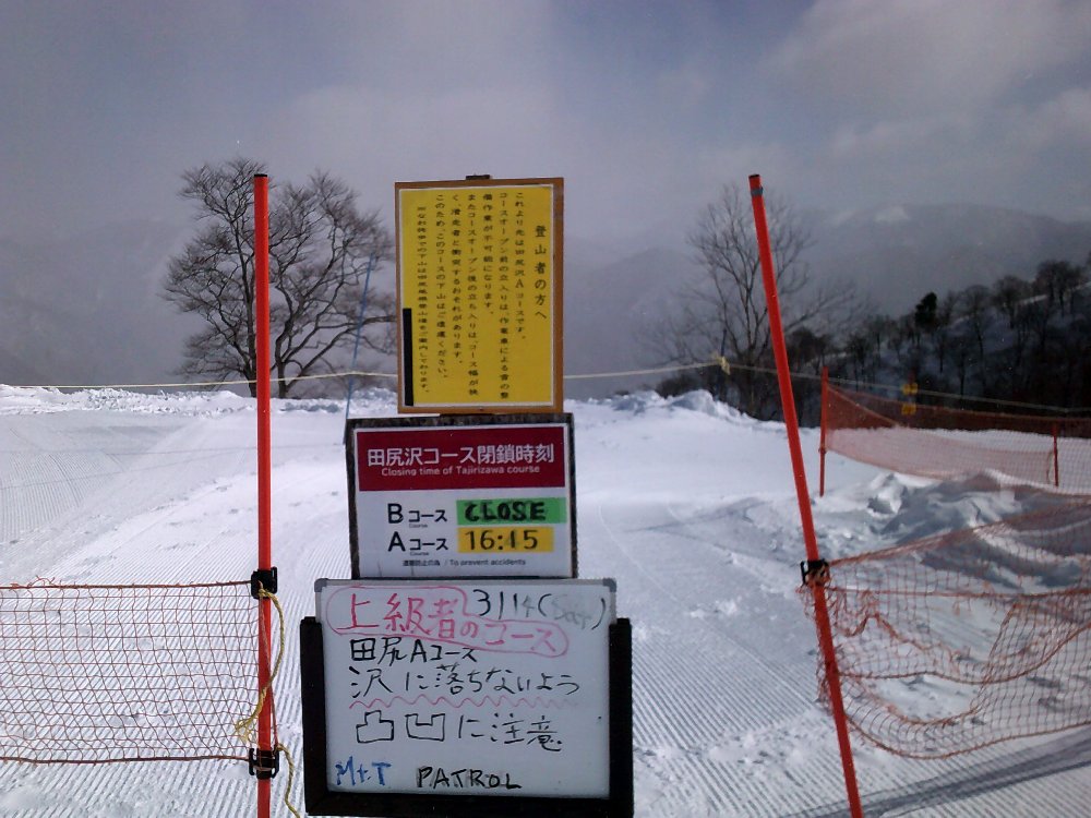 上部のリフト(2基:1機は強風を理由に運休していましたが・・)があるエリアと下山コース4Km(2コースあるようですが、現在1コースは雪不足でクローズ中)以外は、管理区域外ということです。谷川岳ロープウエイの利用客の半数はバックカントリーと登山客のようでした。