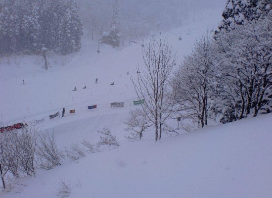 降雪で視界が悪いですが、県連の講習や、ステップアップ教室が実施されました。ハーフパイプでは、ボードの大会が実施されていました。