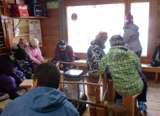 スクールの待合室で暖を取って、レッスン開始を待ちます。