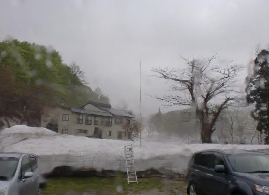 今日は、しっかりした雨と、ガスがお出ましですが、月山キャンプは、雨でも滑ります!