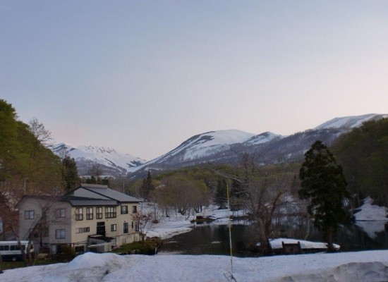 お天気もまずまず、みたいです。お宿の庭には例年以上の残雪があって・・今年は寒かったのでしょうね!?