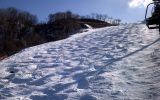 奥伊吹名物のコブ斜面ですが、朝のうちは滑走跡がパリパリに凍っていて、滑りにくい状況になっていました。