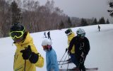 奥志賀スキー場の山頂はガスの中だったりしましあtが、比較的滑り易い雪でした。