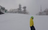 雪が降り止むこともありますが、青空が見えることはありません。昨日は強い雨で、滑るにはかなり厳しい状況だったそうで、今日のコンディションは、ありがたい状況だということです。
