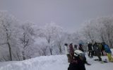 毛無山の山頂は樹氷(単に昨日の雪?)状態に・・例年に比べて雪が少ないので、リフト降り場が急斜面に・・転倒者続出で、リフトは度々止まります。