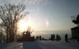 最終パトロールのため山頂に上がりました。「夕日で綺麗♪」とも言っていられません・・ピステン(雪上整備車)が故障したので、ここに止まっています!