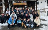 荷物をバスに積込み、お宿(宗五郎)に準備して頂いた昼食のカレー(恒例)でおなか一杯になったところで集合写真を撮りました。(このあと名張に向けてバスで出発します)